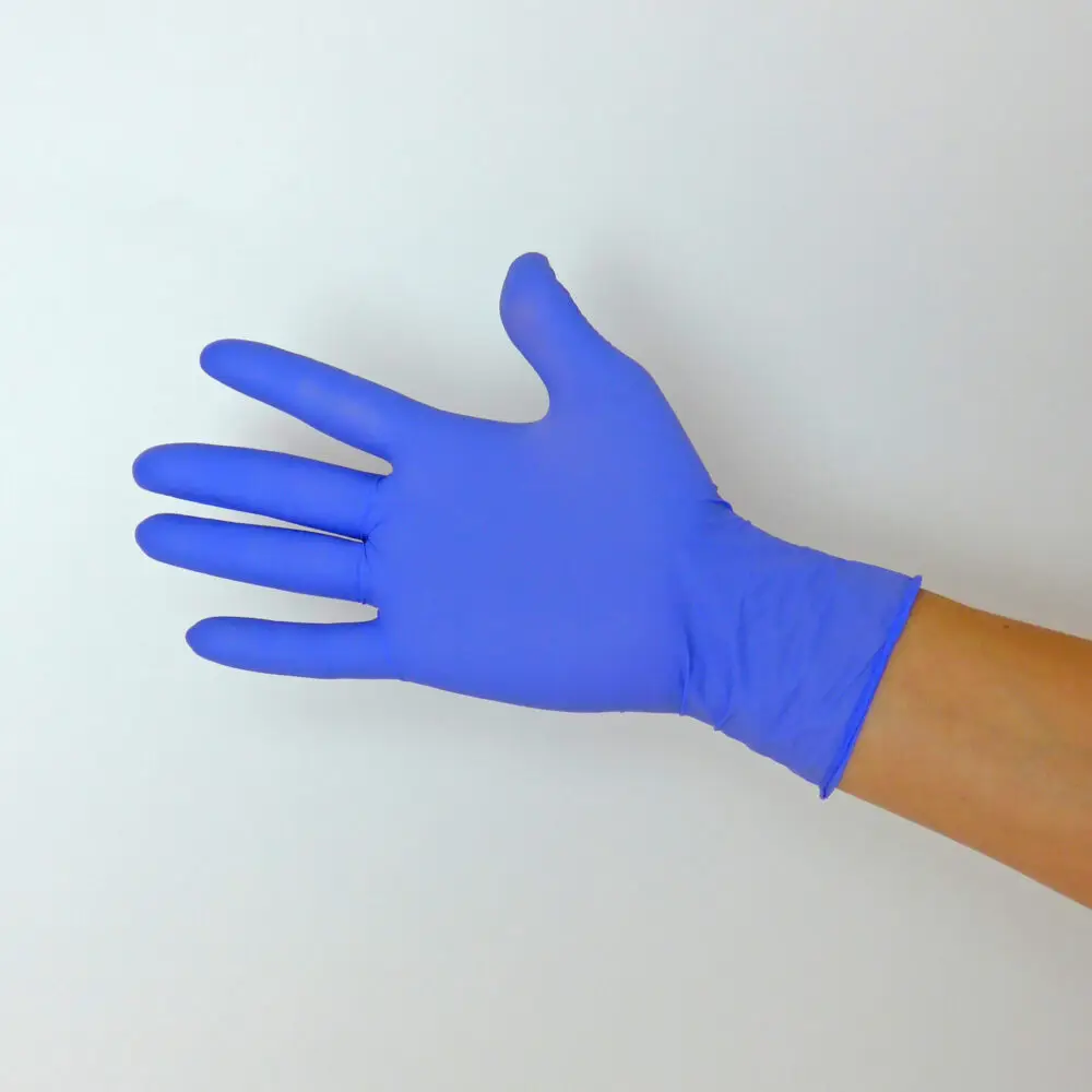 Guantes de nitrilo azul-violeta no estériles, marca Aachen, sin polvo y ambidiestros. Completamente libres de látex natural. Son ideales para su uso en el sector sanitario, especialmente en exámenes, exploraciones de pacientes, toma de muestras y manejo de citostáticos. También son aptos para la industria alimentaria, laboratorios y cualquier entorno donde se manipulen aceites, grasas o productos químicos.